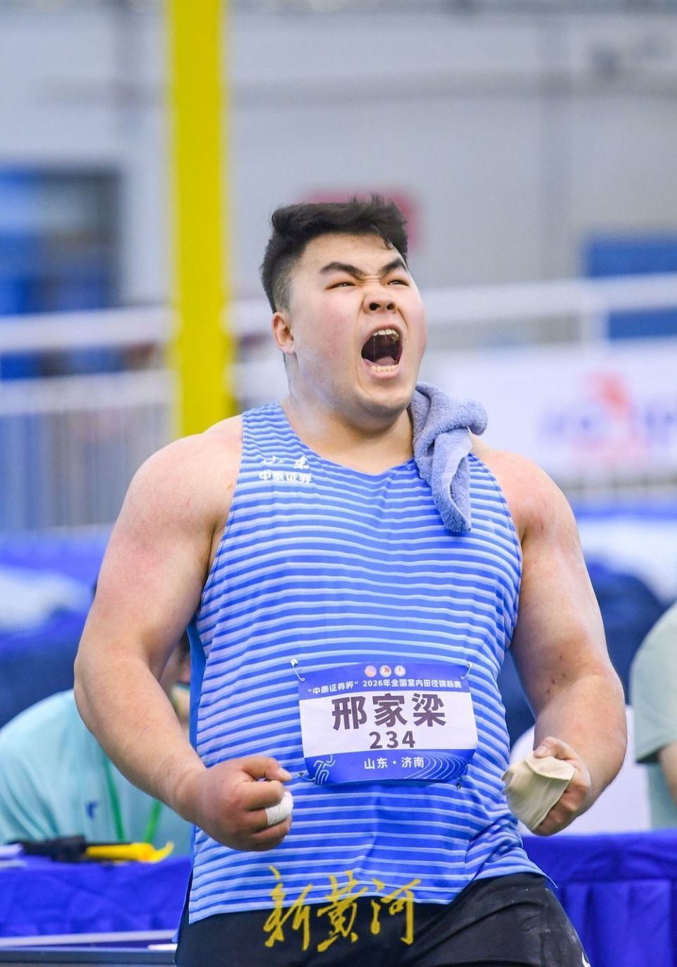 3月27日,在济南举行的2026年全国室内田径锦标赛男子铅球决赛中,山东选手邢家梁上演了令人震撼的“破纪录帽子戏法”。他三次打破由自己保持的全国纪录,最终以20.95米的惊人成绩夺得冠军。